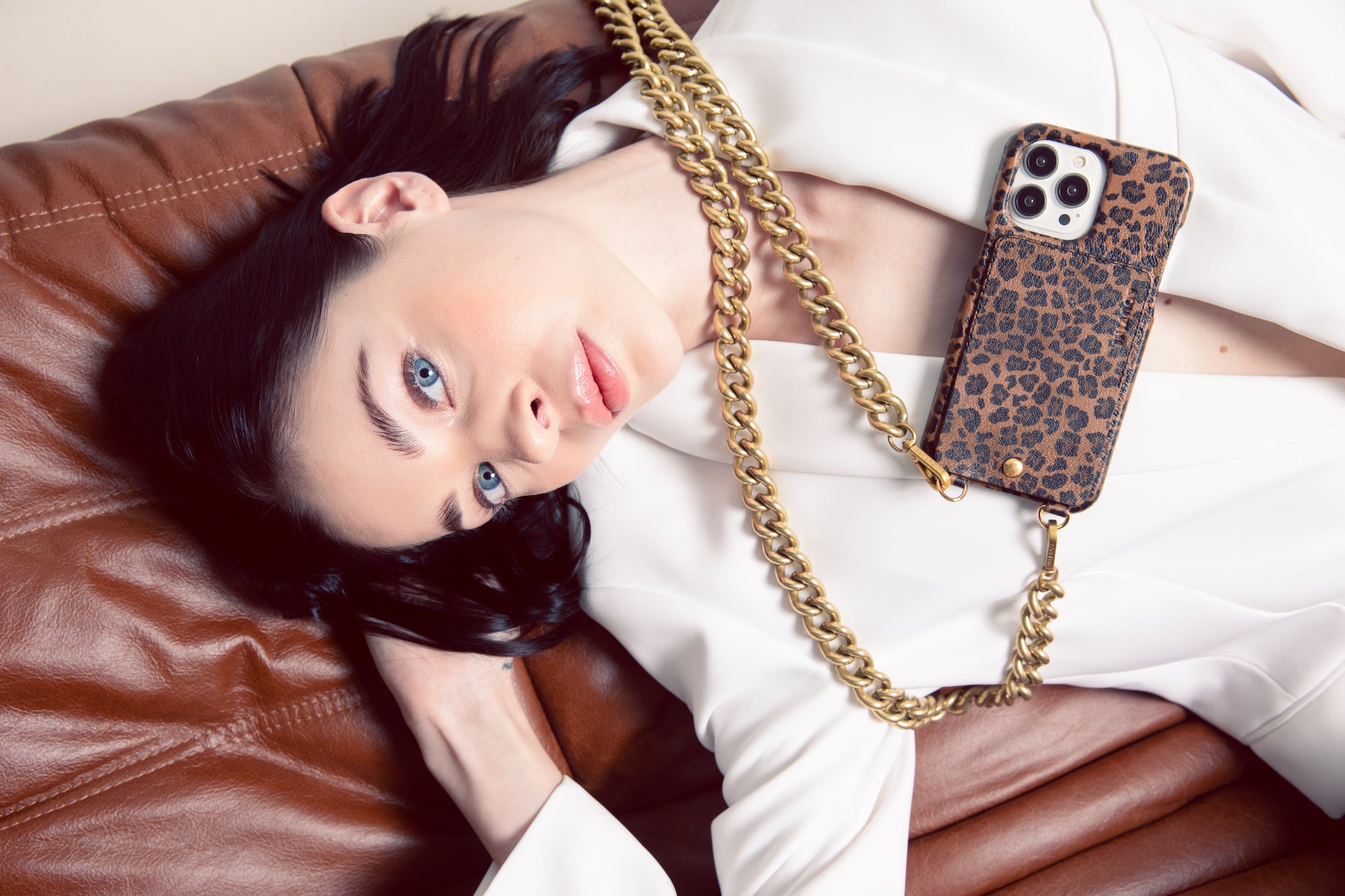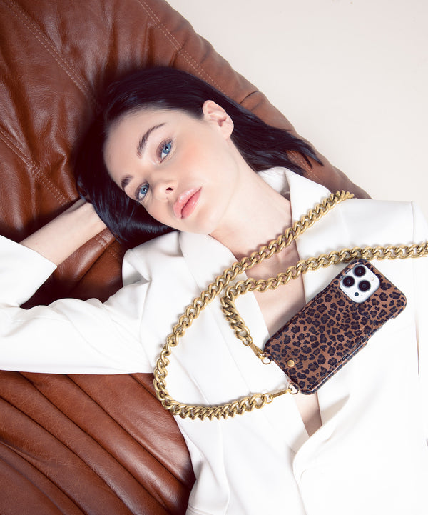 Conscients de notre attachement constant à nos smartphones, nous avons imaginé des coques et accessoires sur le thème léopard (bandoulière, cordon, housse pour MacBook...) qui permettent de les porter comme de véritables bijoux.