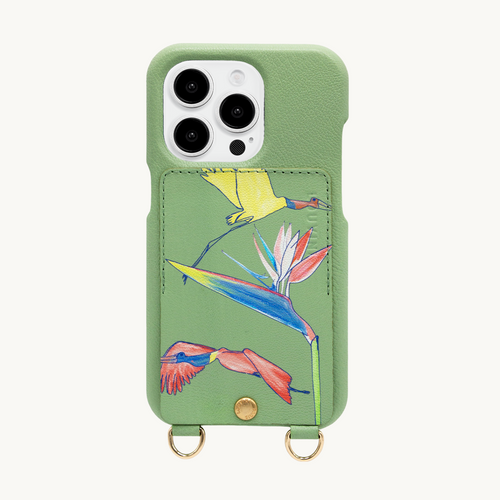 coque de téléphone avec étui en cuir vert COQUE DE TÉLÉPHONE PORTABLE IPHONE EN CUIR AVEC ANNEAUX ET PORTE CARTE EN VERT