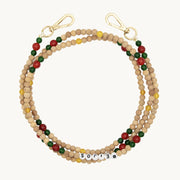 Bandoulière en perles de bois avec deux mousquetons dorés