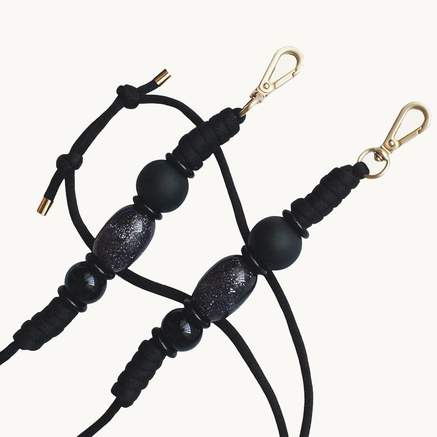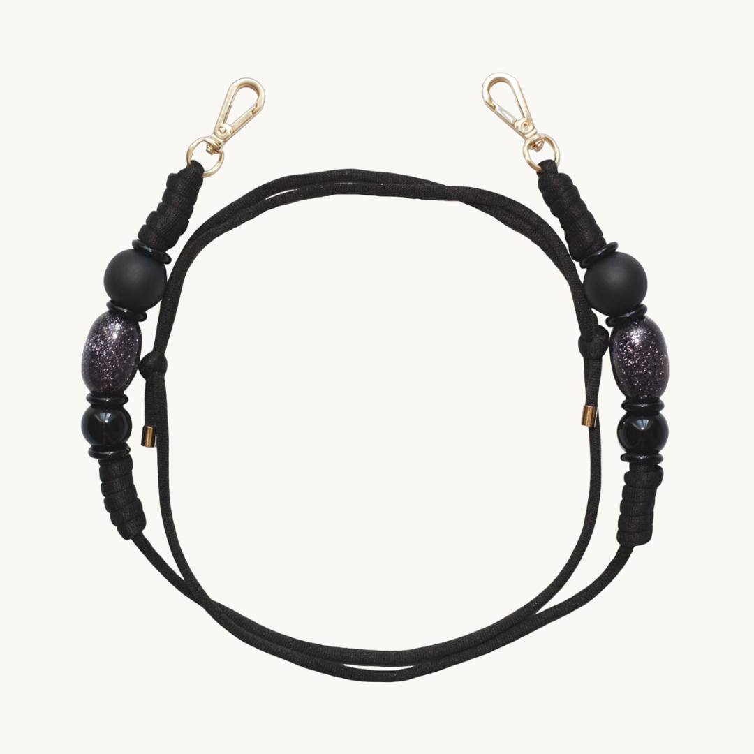 cordon bandouliere pour telephone Noir avec perles et mousquetons